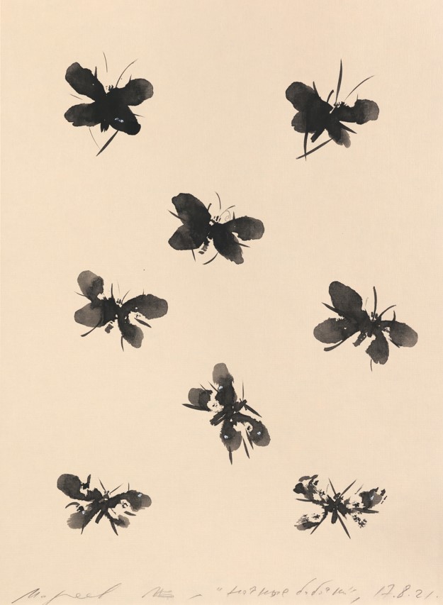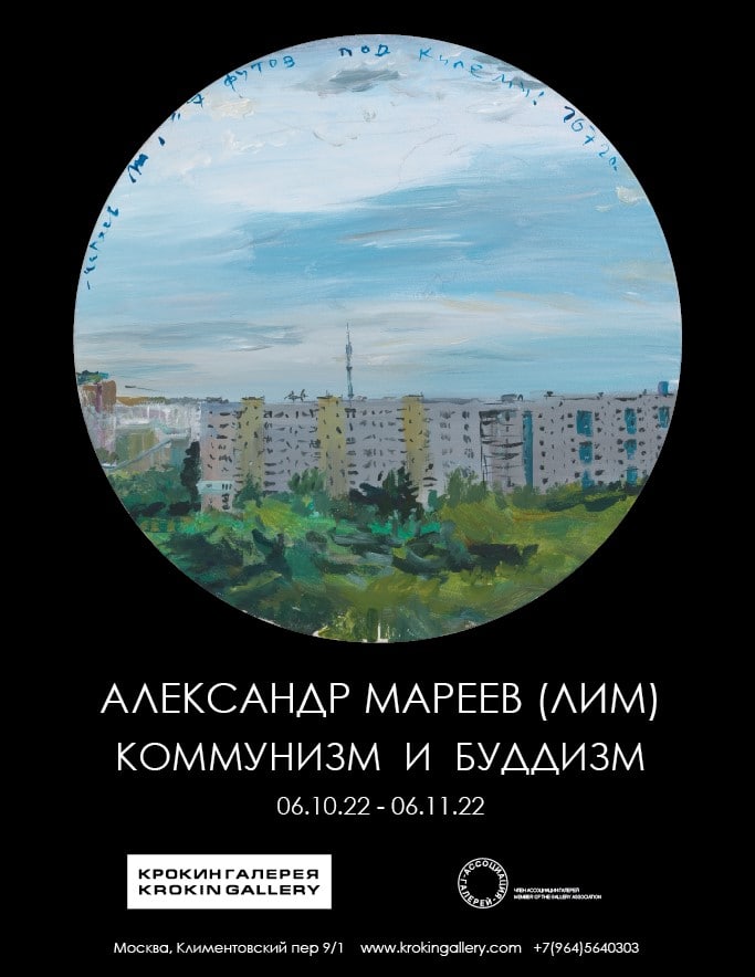 Стилистика его произведений меняется, но сохраняется присущая Марееву особая эстетика, — сложный эликсир куртуазного жеста и чего-то очень личного, не поддающегося какой-либо идентификации, почти экзистенциального, обитающего «на грани». От ставших уже классикой каллиграфических «комариков» и «рыцарей» Мареев если и не отходит, то начинает активнее работать с натурой, чередуя походы на пленэр с фиксацией умозрительных видений несущих в себе отголоски диковинной традиции генетически близкого художнику корейского искусства и постсоветского агитационного плаката, сделанного вручную. Отсюда и сложный эликсир смыслов и форм в новой выставке Александра Мареева (Лим) – «Коммунизм и буддизм».