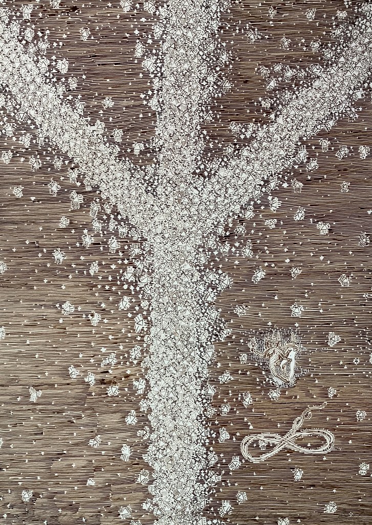 Его нездешнее искусство — многосложные «иероглифы», наделённые собственным смыслом и качеством искусного изложения, варьирующего изысканную каллиграфию с чем-то экстремальным. «Это поиск не терминологии, а формы» — полагает художник, заостряясь на «точности движения и индивидуальности».
